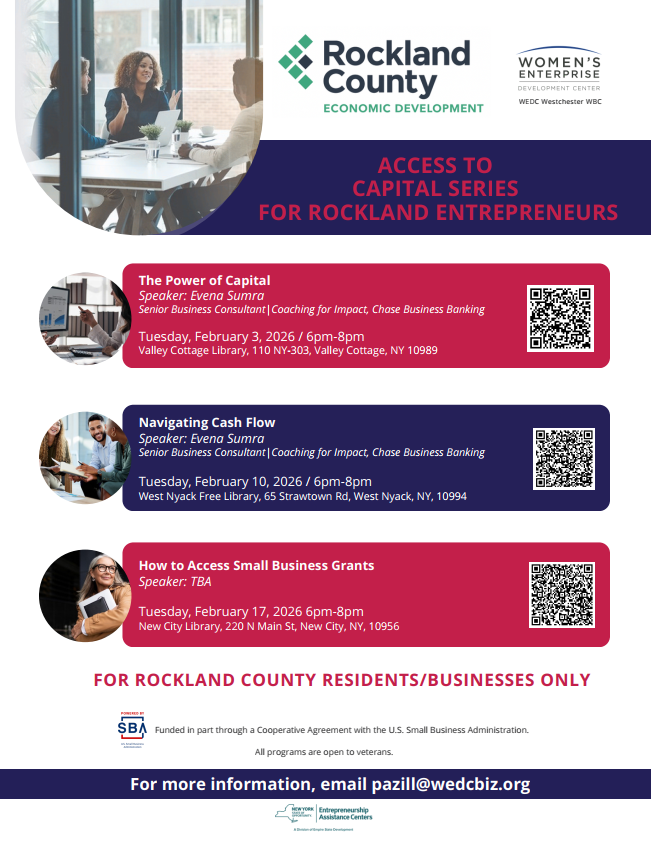 Valley Cottage Library 110 NY-303, Valley Cottage, New YorkThe Rockland County Economic Development & Tourism Department has partnered with the Women's Enterprise Development Center (WEDC) to provide this "Access to Capital" Series for residents and businesses in Clarkstown. […]